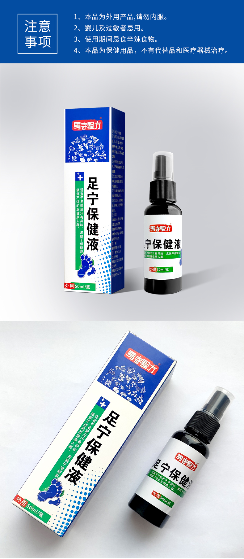 馬寺驗(yàn)方足寧保健液,針對腳部各種問題,植物萃取精華,快速緩解足部不適,遠(yuǎn)離腳癢腳臭,使用方便,分量足,源頭噴劑生產(chǎn)廠家,支持噴劑加工oem貼牌個性化定制,可代理批發(fā),出貨快。
