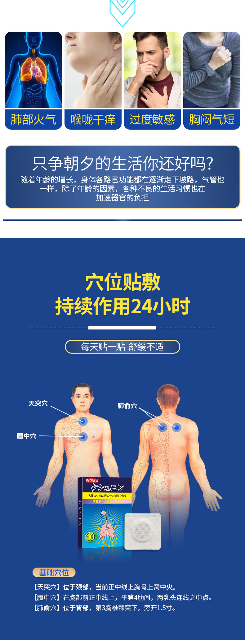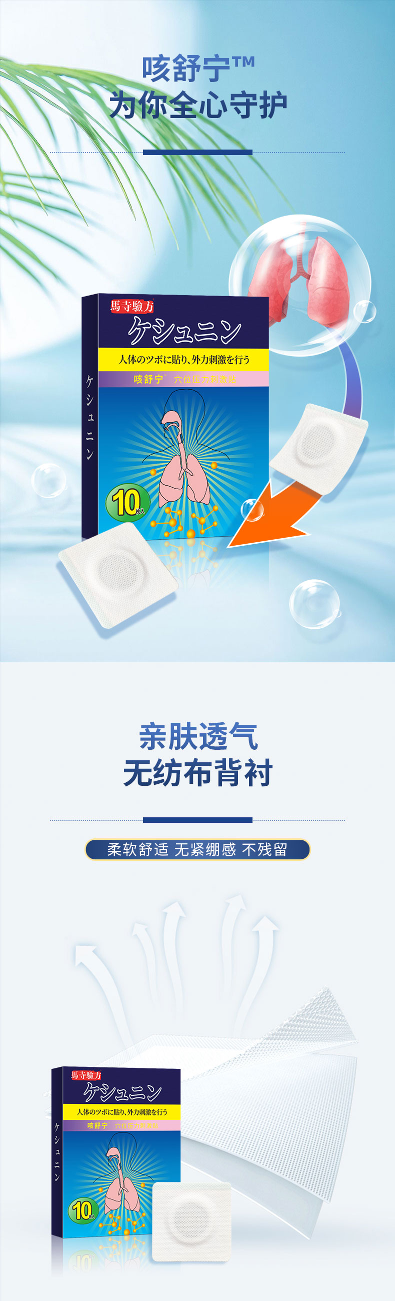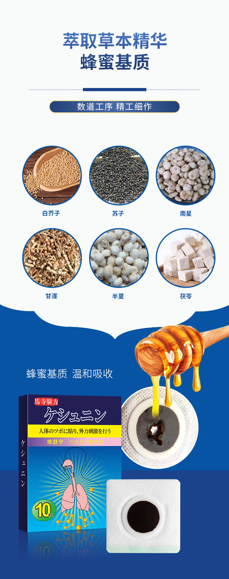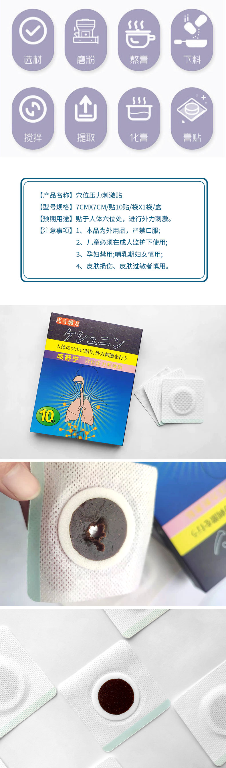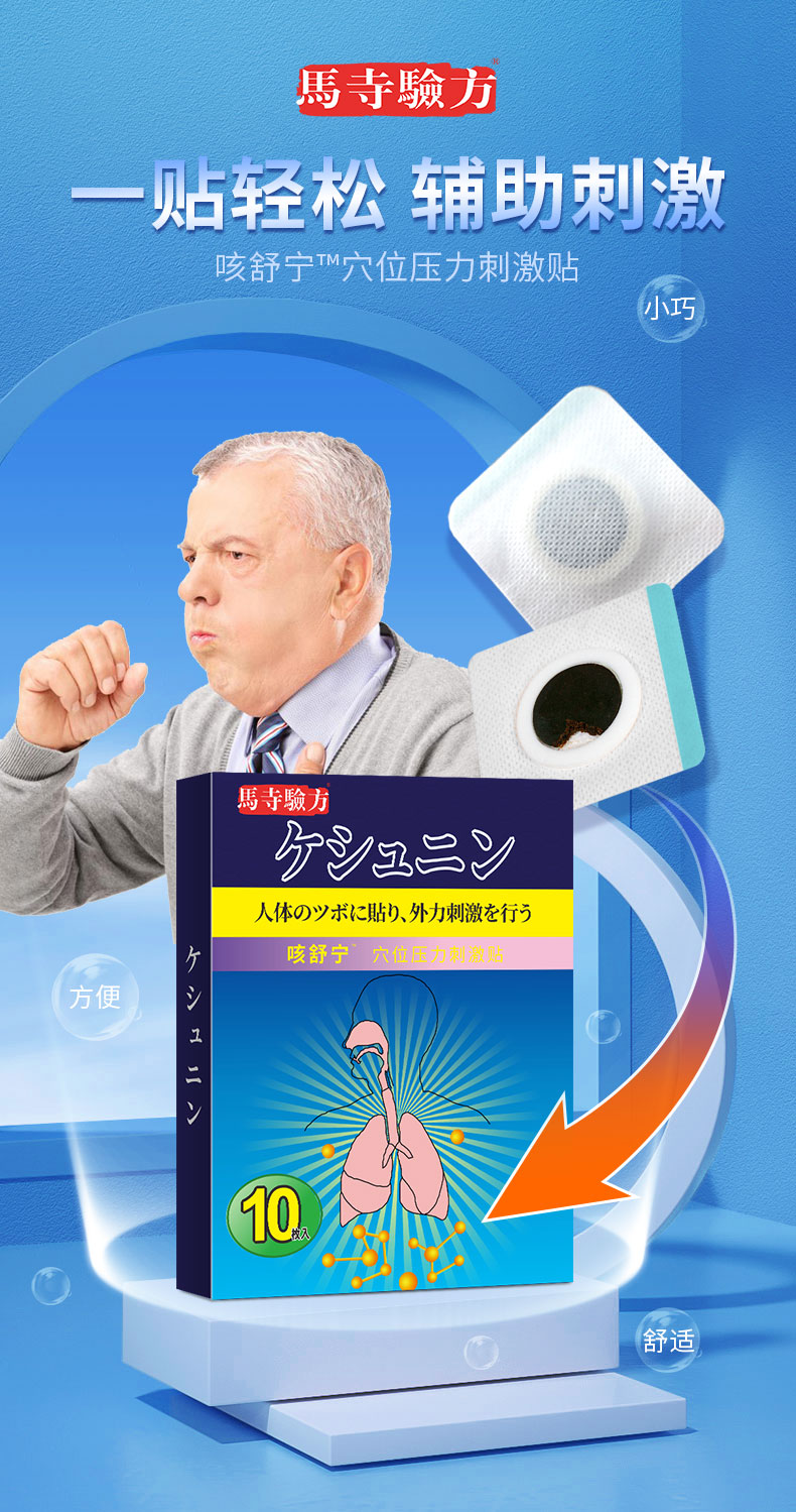 馬寺驗(yàn)方咳舒寧穴位貼,萃取草本,蜂蜜基質(zhì)溫和吸收,數(shù)道穴位貼加工工序,無紡布背襯穴位敷貼透氣親膚,貼敷方便,小巧便攜,持續(xù)溫護(hù)24小時(shí),正規(guī)工廠,標(biāo)準(zhǔn)化生產(chǎn)車間,多樣化定制,出貨快,承接貼牌代加工,支持批發(fā)代理,量大從優(yōu)。