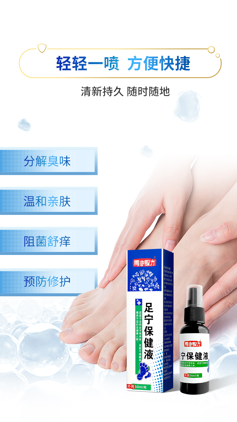 馬寺驗(yàn)方足寧保健液,針對腳部各種問題,植物萃取精華,快速緩解足部不適,遠(yuǎn)離腳癢腳臭,使用方便,分量足,源頭噴劑生產(chǎn)廠家,支持噴劑加工oem貼牌個性化定制,可代理批發(fā),出貨快。
